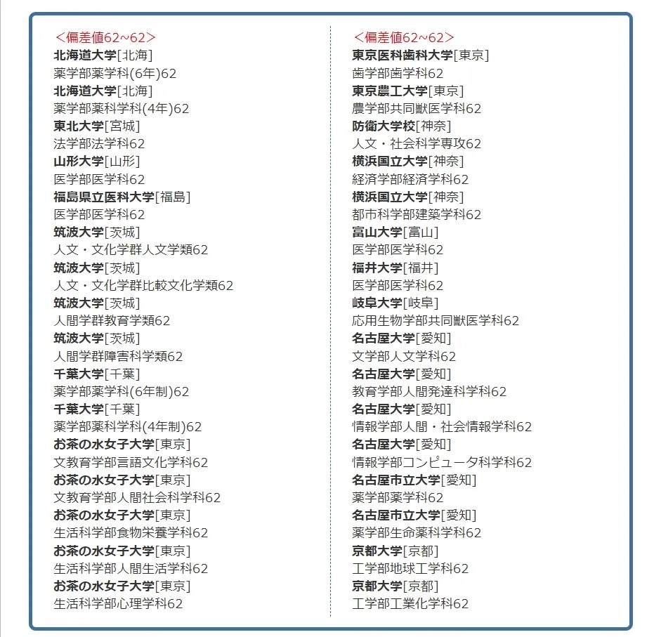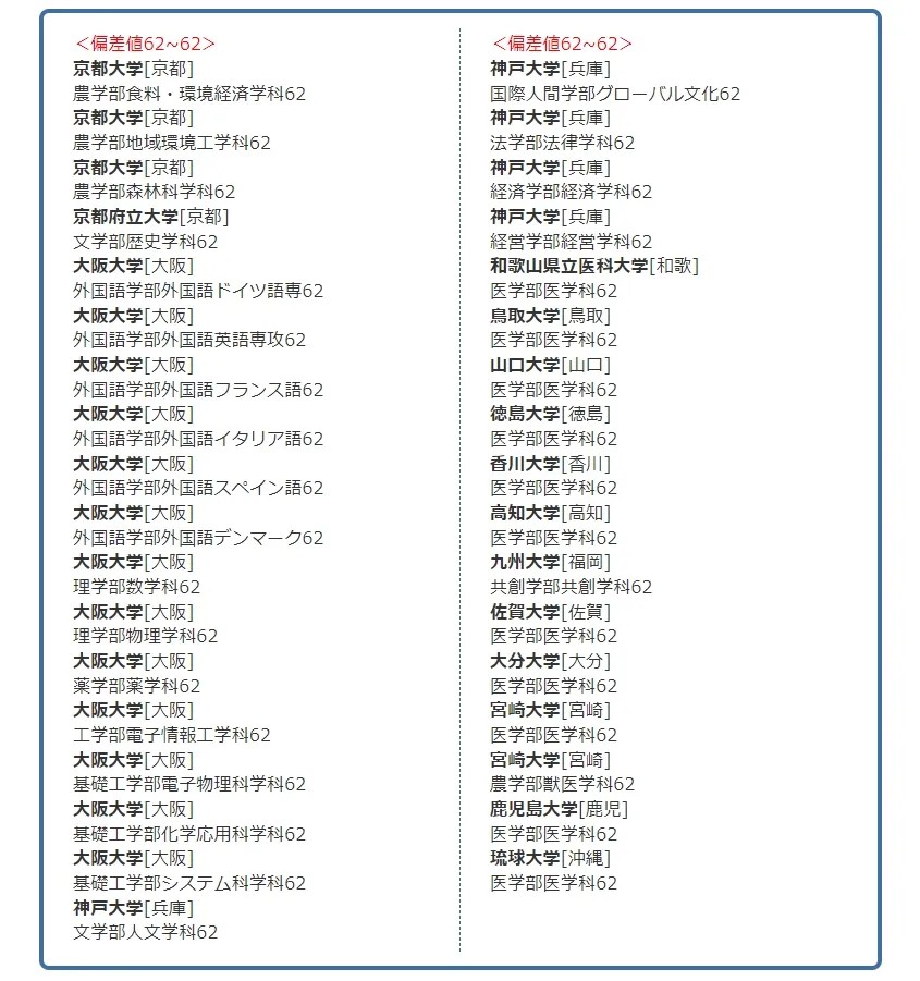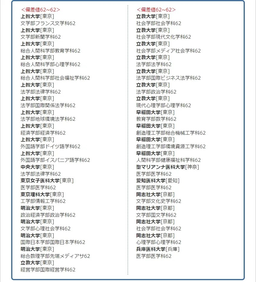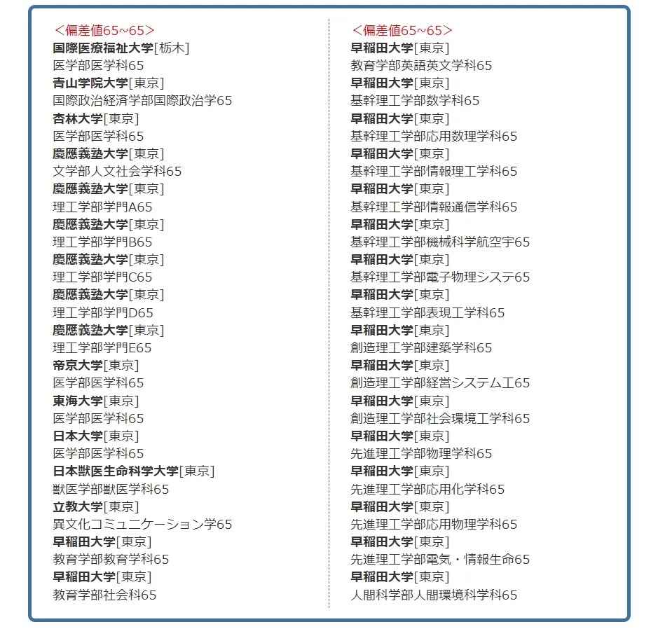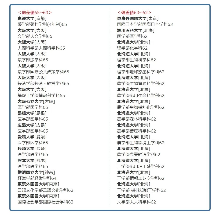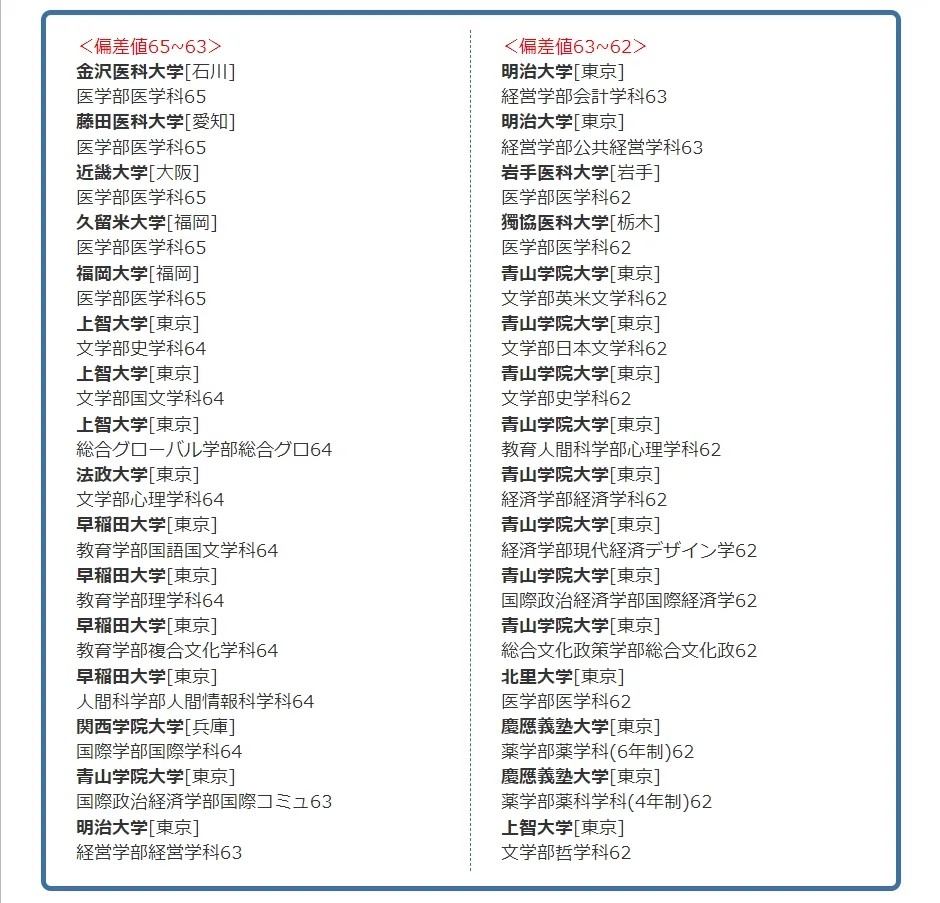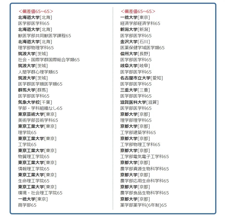 · 日本院校偏差值65-55之间 ≈ 国内211类院校