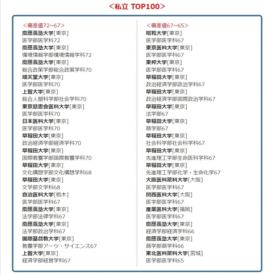 日本Top1OO大学偏差值