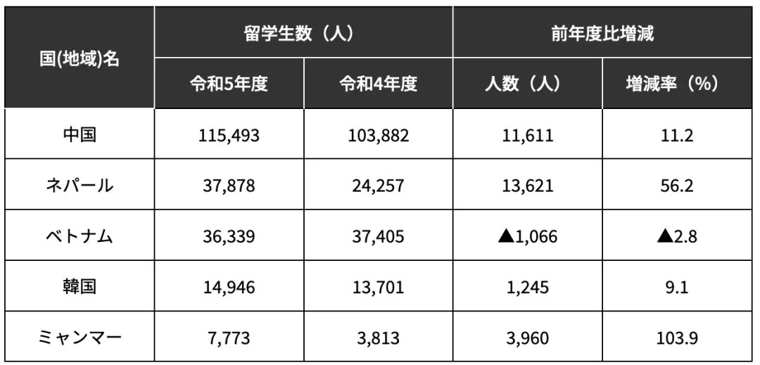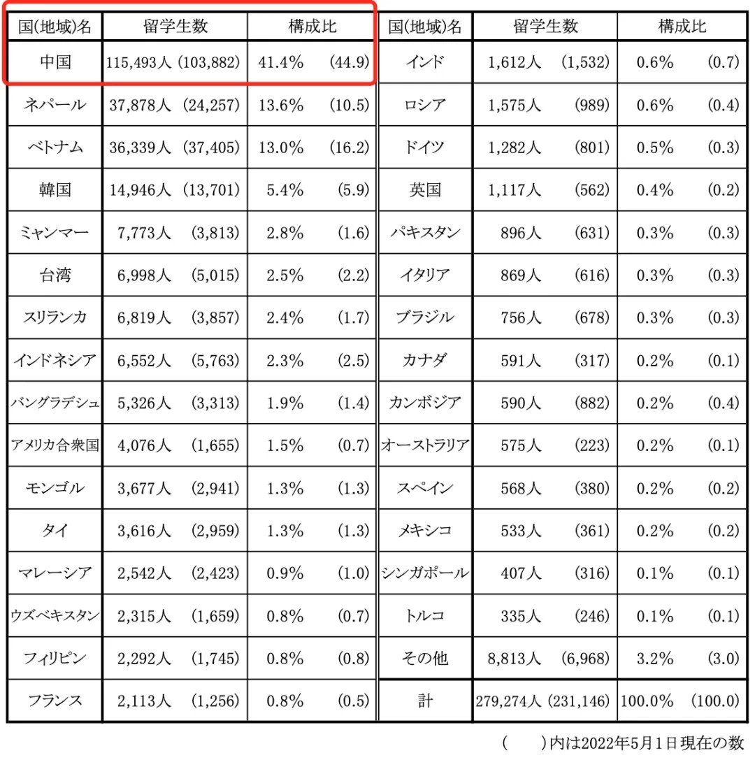中国留学生占比:在所有外国留学生中,中国留学生占据了相当大的比例。以2023年度为例,中国大陆留学生人数达到了115,493人,约占留学生总数的41.4%。虽然这一数据包括了预科、语言学校、大学院等多个阶段的学生,但可以合理推测,在大学本科留学生中,中国学生的数量也是相当可观的。
